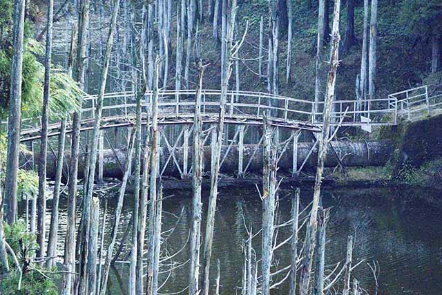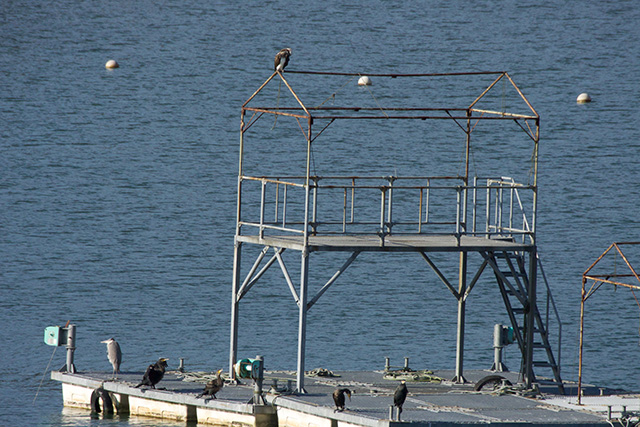 湖面の水位が低く、いつもは隠れている施設が見えていた