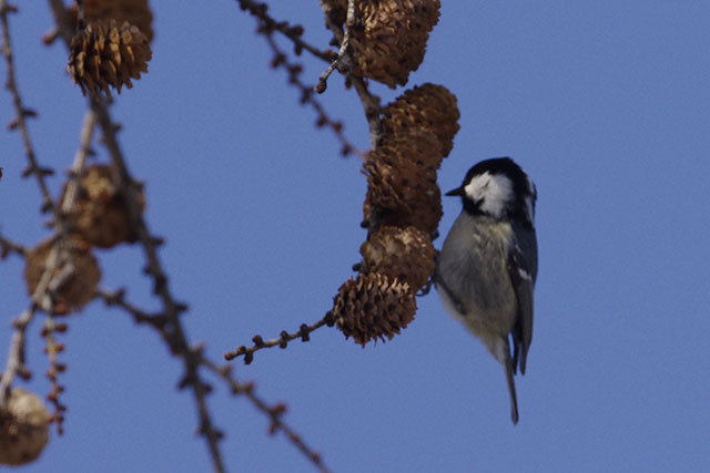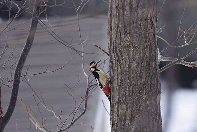 この辺りでは1〜2月頃、山の手通りの街路樹のナナカマドの実を目当てにレンジャク類が大挙して押し寄せるというので、山の手通りを歩いてみたが、既にナナカマドの実は食べ尽くされて殆ど残っていなかった.山の手通りは諦めて近くの宮丘公園という丘陵の林間公園を散策してみた.