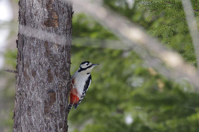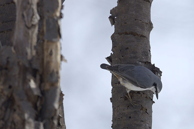 林の中はまだ雪ですっぽりと覆われているが、この所の高温で雪が湿って適度に圧雪されており、スノーシューが無くても比較的楽に歩く事ができた.この季節は特に珍しい野鳥に出会える訳ではないが、クマゲラ君やアカゲラ君、ゴジュウカラやコガラなどのカラ類、アトリなどお馴染みの鳥君達を観察する事ができる.