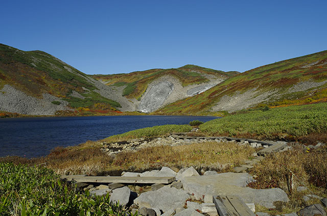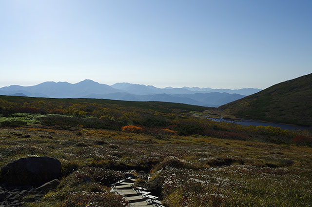 コースの半ばぐらいから湿地帯となり延々と泥んこの水溜まりの中を歩くのは結構疲れたが、それでもこの素晴らしい景色を堪能できればこの程度の苦労などどうってことない.この日は今回の北海道遠征で最高の一日だった.