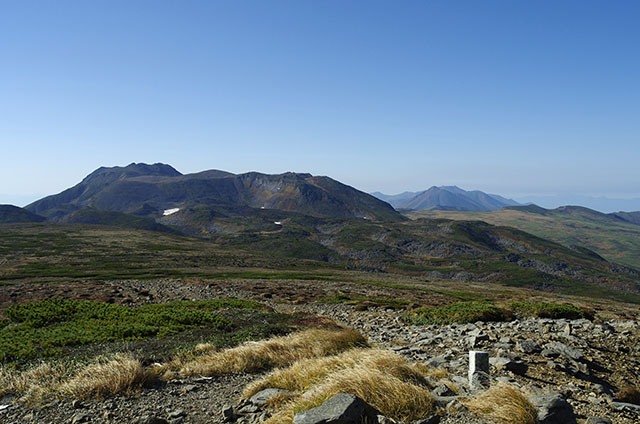 化雲岳から旭岳や白雲岳などの大雪山の主峰を一望できる
