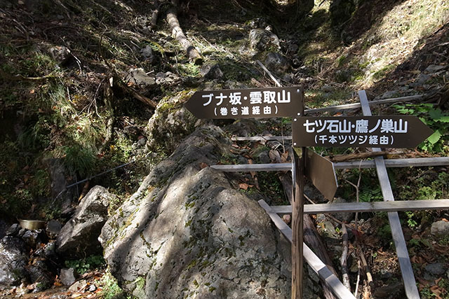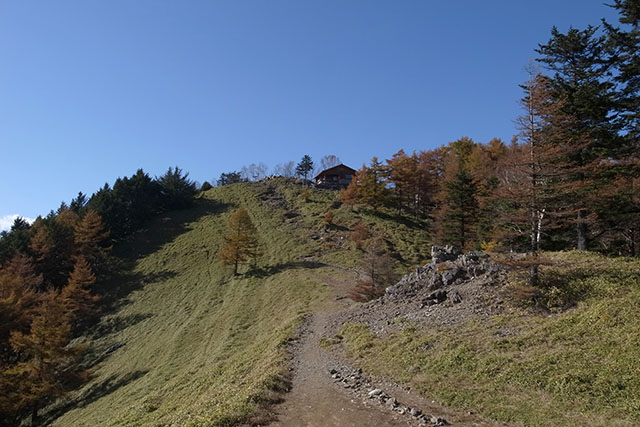 七ッ石山から雲取山にかけては緩やかな見通しの良い格好のハイキングコースとなる.ブナ坂と呼ばれる分岐の先にあった見通しの良い場所がとても気持ち良かったので、お昼を食べ小一時間ほど昼寝をして過ごす.雲取山の頂上はもう少し先のようだが、心地良いコースをお散歩しながらのんびりと頂上を目指す.途中に町営の奥多摩小屋があったが、今にも崩れそうなオンボロ小屋だったが、まだ営業は続けているようだ.