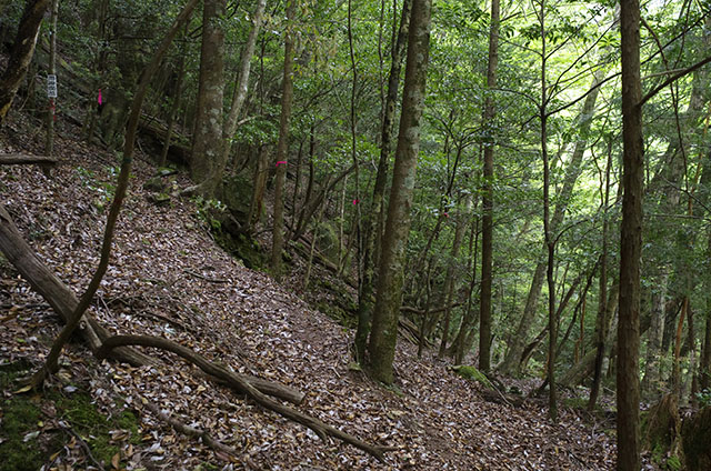 三重の滝までのルートは所々踏跡不明な箇所があるが木に付けられたマーキングテープを辿って行けば大丈夫だ.閼伽坂峠の手前でアカショウビンの鳴き声を耳にしたので、何処で鳴いているのか探ってみたが肉眼では姿を確認できなかった.今度機会があればアカショウビンを探しにまた前鬼宿を訪れようと思う.