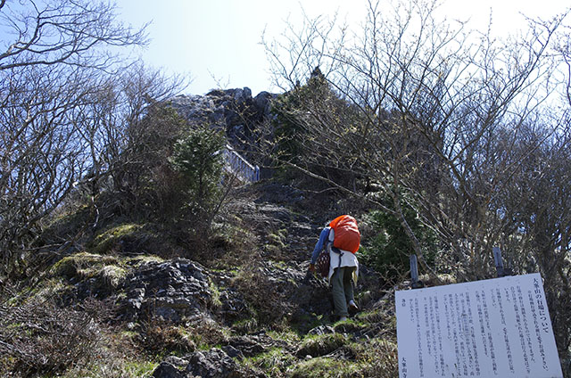 大天井ヶ岳の頂上からの展望はイマイチで、そそくさと次の山上ヶ岳へ向かう.山を下りきった先に五番関と呼ばれている女人結界門がある.山上ヶ岳は日本で唯一現在も常時女人禁制が敷かれている山だ.一登山者から見れば何とも時代錯誤な話だが、山岳修験道を守りたい人達にとっては女人禁制は今後も維持したいのだろう.ここから先は山岳修験道の聖域なので、お邪魔させて貰うという気持ちで山上ヶ岳へ向かう.