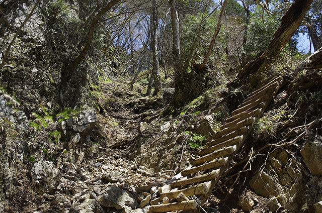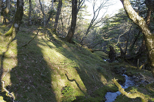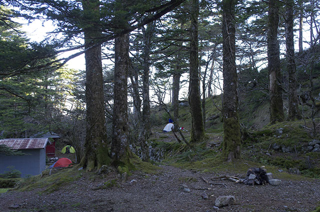 ミソサザイ君の賑やかな囀りで目が覚めると辺りはすっかり明るくなっていた.廻りの人達は既に出発してしまったようだ.今日は大普賢岳から和佐股方面へ一旦下りて、笙の窟(第72靡)へ立ち寄りたいところだが、笙の窟までは往復で二時間半は掛かりそうだ.笙の窟に立ち寄ると今夜の宿は行者還避難小屋ということになってしまう.これまで超スローペースで歩いてきたので、この辺で少し距離を稼いでおかないと予定通りに前鬼に下りられなくなってしまう.笙の窟に寄ることが出来ないのは無念だが、今回は諦めて今日は弥山まで足を延ばすことにした.