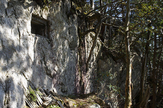 この歌の意味は少し分かり難いかもしれない.眼前に立ちはだかる屏風のように垂直に切り立った崖に山伏達は発奮したことを歌っていて、行者(役行者)は引き返し、未熟な山伏はここで動けなくなってしまったという言い伝えを受けての歌らしい.