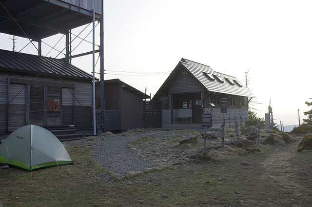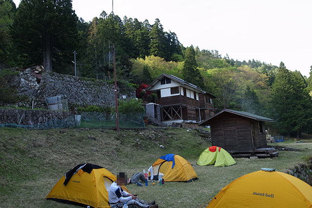 かつてあったという宿坊の跡の石垣が見えてくると小仲坊は直ぐ先だ.今回は小仲坊のキャンプ場でテントを張らせて貰うことにした.前回は雨で行者堂が閉まっていたが、今回は行者堂の扉は開いていて中の様子を伺うことができた.前回は連休の最終日前日とうこともあり、40人以上泊まれるという宿泊所は満員だったが、今回はテントが10張り程度で、宿泊客が数名程度でとても落ち着いた夜を過ごすことができた.