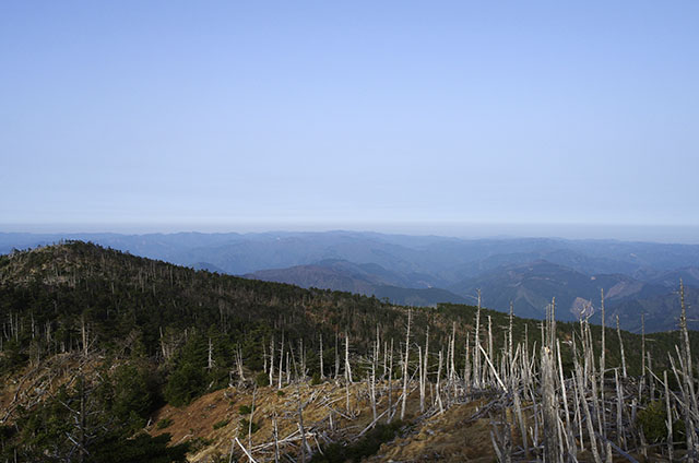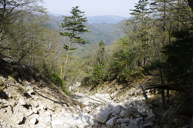 時間があればここで一泊して月を眺めたい所だが、明日は天気が崩れて雨になりそうなので今日中に前鬼まで下りてしまうことにする.太古の辻から前鬼までは二年前に土砂降りの雨の中を歩いてはいたが、廻りの景色を眺めている余裕など無かったので今回はじっくりと時間を掛けて下りて行くことにする.