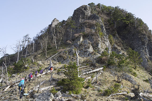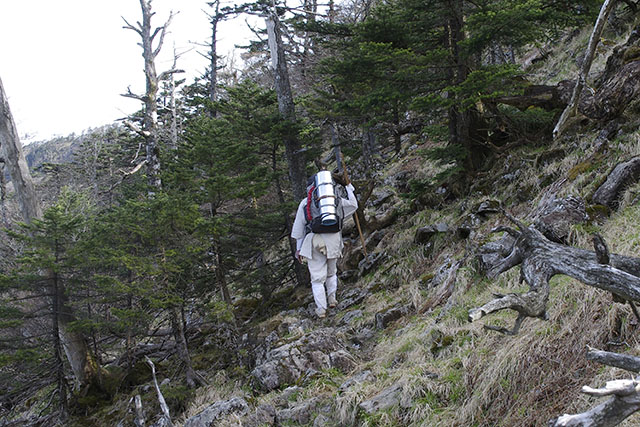 途中で完全な行者姿の外国人女性とすれ違った.奥駈道では何度も行者さんを見かけたが、外国人の行者さんは初めてだ.単なる観光ではなく本格的に修行をしているようだ.鳥の水と呼ばれているコース沿いの水場でたっぷりと給水してから釈迦ヶ岳へ向かう.