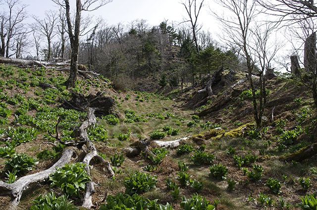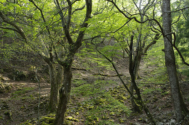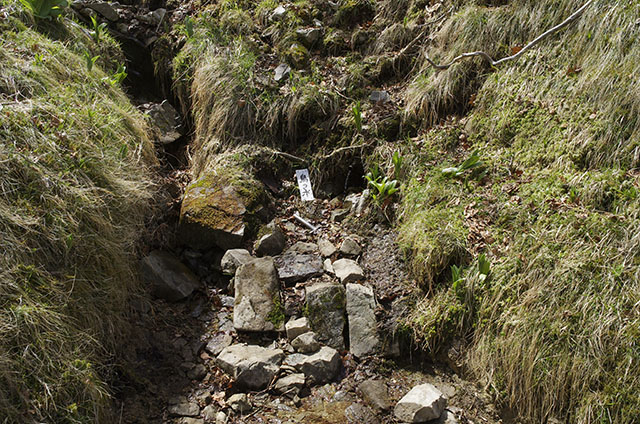 前回は歩き難いとてもしんどい道だと感じたが、天気が良くてもこの下りは結構堪える.石ころゴロゴロ、階段だらけで嫌になる.ここを登るのはさぞかししんどい事だろう.前鬼が近づくにつれてトチノキなどの広葉樹林帯の森となる.みずみずしい新緑の森の中でミソサザイやヒタキ類、オオルリなどの野鳥の囀りに包まれているととても贅沢な気持ちになれる.このまま前鬼まで下りてしまうのは勿体ないので、思い切り時間を掛けて森の中を散策してきた.