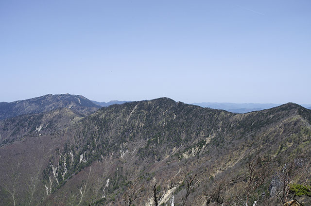 弥山から八経ヶ岳までは20〜30分程だろうか.近畿圏で標高の一番高い八経ヶ岳の頂上からは360度の絶景を望むことができる.弥山に泊まり朝一番で八経ヶ岳の頂上から御来光を眺めるのも良いかもしれない.明星ヶ岳、仏生ヶ岳、孔雀岳を経て本日のメインイベントとも言うべき釈迦ヶ岳へ向かう.