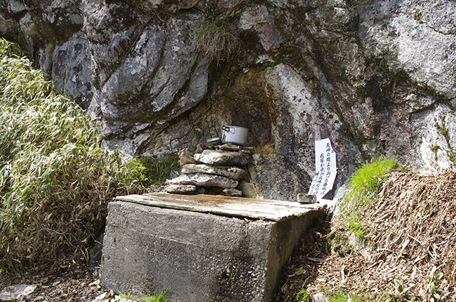 深仙ノ宿には小さな避難小屋と潅頂堂と呼ばれる小さなお堂が建てられている.お堂から少し離れた崖下に香精水と呼ばれている水場があった.水量はチョロチョロ程度でこの日は1リットルの水を溜めるのに1分以上は掛かりそうだった.ここでランチ休憩をしながらのんびり過ごした.