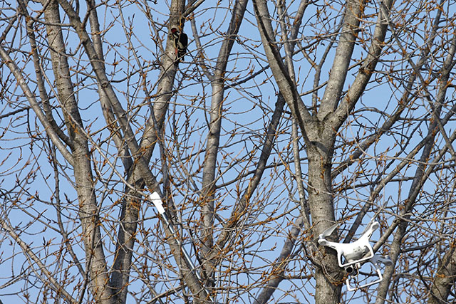 コチョウゲンボウ君の定位置の木には何故かドローン君も引っ掛かっていた