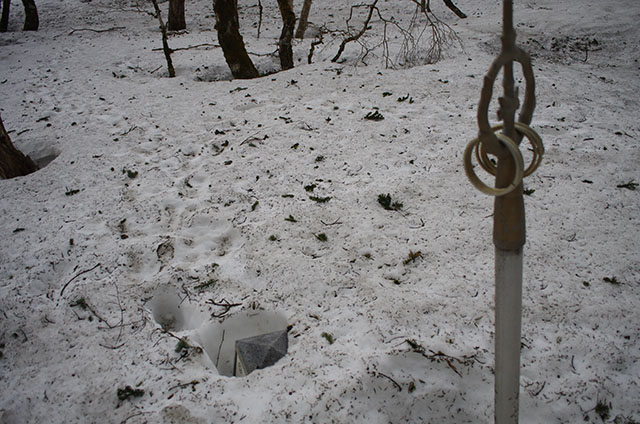 世界遺産標識もまだ雪にどっぷり埋まっている