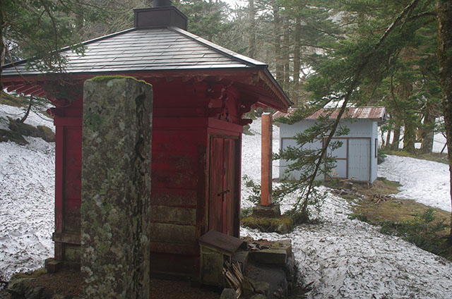 大峯山寺のある山上ヶ岳までは相変わらず雪に覆われていてコース取りに苦労した.大峯山寺の周辺もまだ雪に埋もれていて、あと2週間ちょっとで開山できるのかどうか微妙な所だろう.今度の連休で奥駈けに挑む人は事前にコース上の雪の様子を確認しておくことを進める.