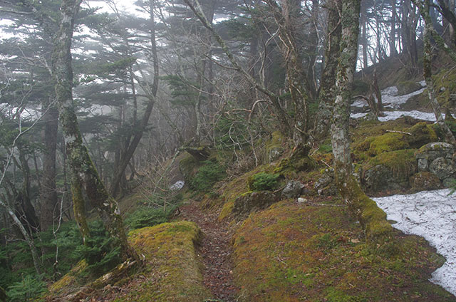 山上ヶ岳から大天井ヶ岳までは所々雪が残っているものの、コース取りに苦労する事も無く比較的順調に進んで行くことができた.大天井ヶ岳への上りで中年女性の2人連れとすれ違い暫く雑談を取り交わした.昨夜は二蔵小屋に泊まったようで、この後五番関から洞川温泉へ下りて1日一本しかないバスで大阪へ帰ると言っていた.