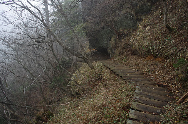 人っ子一人居ない大峯山寺を後に、宿坊経由で洞辻茶屋方向へ下っていると、中年男性が階段ですれちがった.この男性の話ではここ数日で2度ほど山上ヶ岳を目指したが何れも途中で断念したと言っていた.今回の3回目でようやく登ることができそうだと笑顔で話していた.