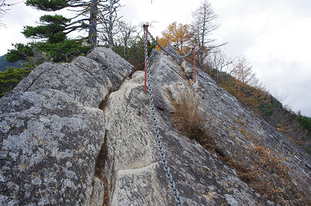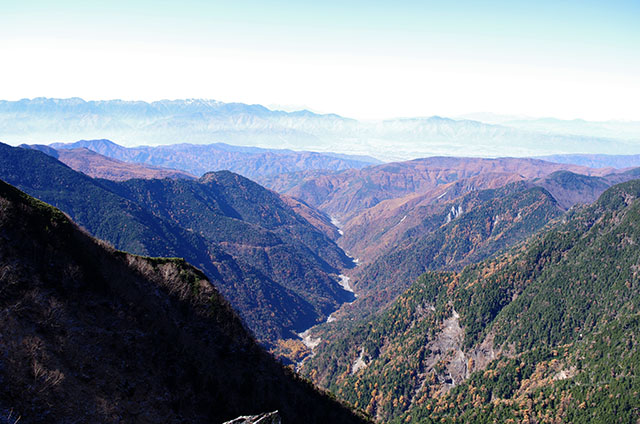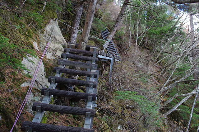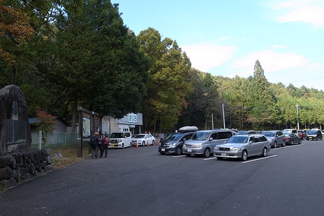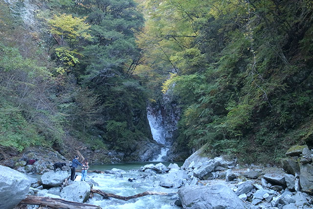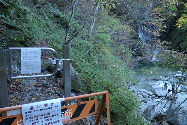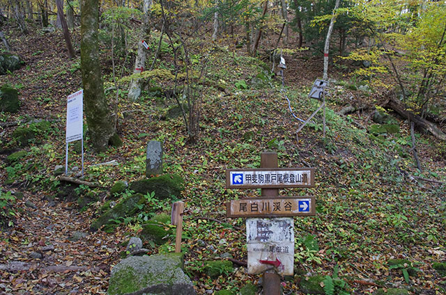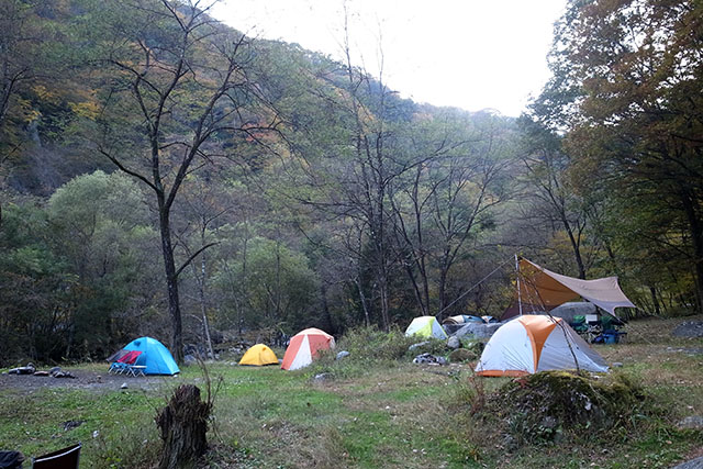 朝一のスーパーあずさ号を利用すれば初日に七丈小屋まで辿り着く事も可能ではあるが、新宿を出発したのがお昼を過ぎていたので、初日は黒戸尾根登山口のある尾白渓谷のキャンプ場でテントを張って、翌朝から登り始めることにした.11月初旬の3連休と天候にも恵まれ、尾白渓谷周辺のハイキング客で結構賑わっていた.
