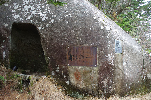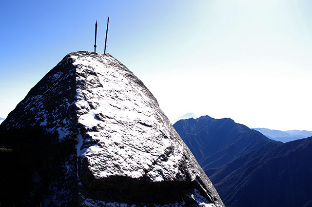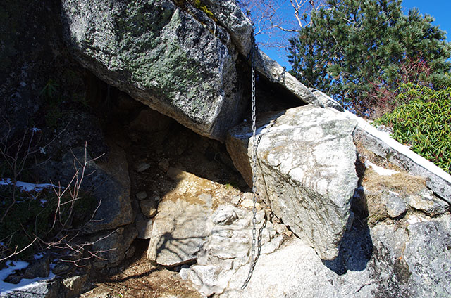 甲斐駒のシンボルの刀剣が刺さった巨大岩