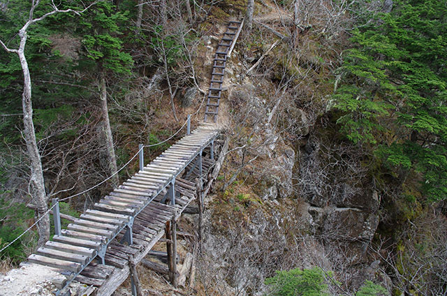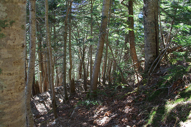 足取りが重く想定していた時間よりも大幅に掛かっているが、今夜は七丈小屋のテント場でテントを張るので、時間を気にせずにのんびり登って行くことにする.朝方は結構晴れてはいたが、時間が経つにつれてどんどん雲が多くなってきた.