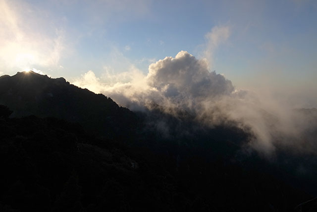 この日は平日にも拘わらず、新高塚小屋は宮之浦岳登山目当ての人達で結構混み合っていた.小屋泊まりの経験が全く無い人達が多かったためか、山小屋での基本的なマナーを弁えない人達が多く、夜中中ドタバタ・ゴソゴソと五月蠅くて眠れなかった.もう二度と屋久島の避難小屋には泊まりたくなくなるくらい最悪の一夜だった.