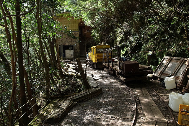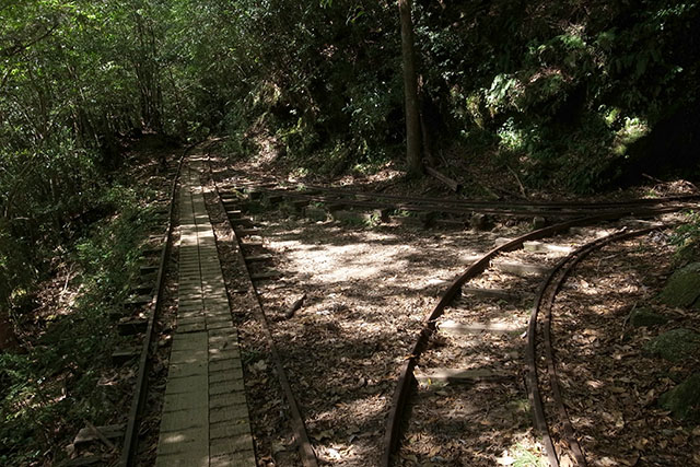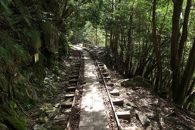 ここからは森林鉄道の緩やかな軌道の上を歩いて下って行く