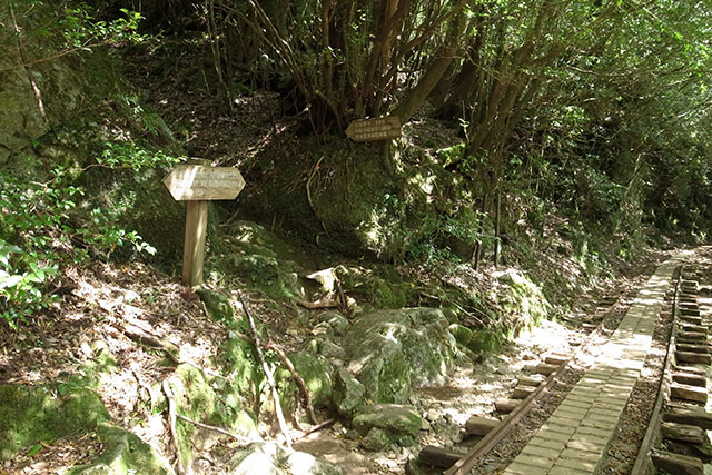 ここでトロッコ軌道と分かれ白谷雲水峡へ向かう