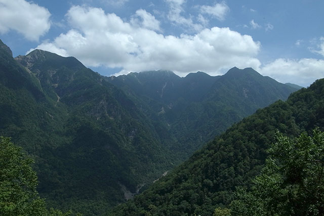南アルプス林道から眺める対岸に聳える鋸岳がとても印象的だった.次は鋸岳に挑戦してみようと思う.