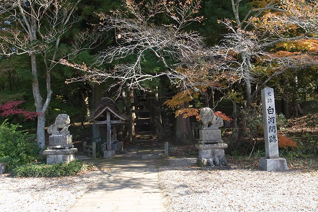 『清水流るるの柳』を見物した後、芭蕉と曽良は奥州街道を北上し、国境の峠を越え白坂集落の手前で右に折れ、昔の関所跡を訪ねるために旗宿集落に向かっている.翌日、宿の主人から聞いた古関跡を訪ねたた後、関山という標高619mの低山を登った後白河城下に入ったという.白河の関への足どりは曽良の日記に詳しく記載されている.