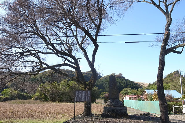 義経が鎌倉に馳せ参ずる際に義経に付き添い、討ち死にした佐藤兄弟の父である庄司基治が息子二人をここまで見送り、引き返したと言われている場所で、桜の杖を地面に突き刺し、忠義を尽くしたならこの杖がこの地に根付くだろうと息子たちに説いたと言われている.今は畑の中ではなく、道路の端となっているが、義経びいきの芭蕉であればこの木にも立ち寄ったことだろう.