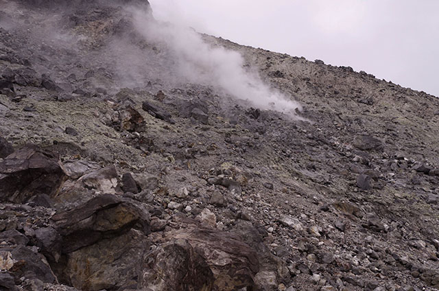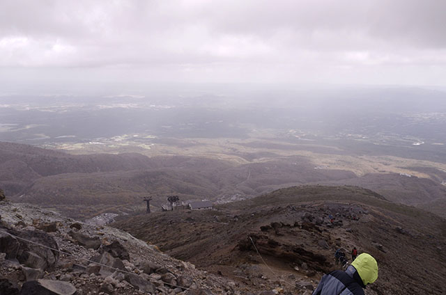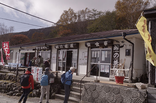 今回も山の上はもの凄い風のようだが、とりあえずロープウェイは運行をしていたので大丈夫だろうと言うことで、峠の茶屋から峰の茶屋避難小屋のある稜線に出ることにした.朝早くからロープウェイで登った人たちが次々と降りてくる.避難小屋に近づくに従って風がどんどん強くなってきた.あまりの強風に途中何度も立ち止まって強風をしのぐ.