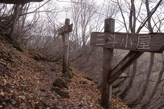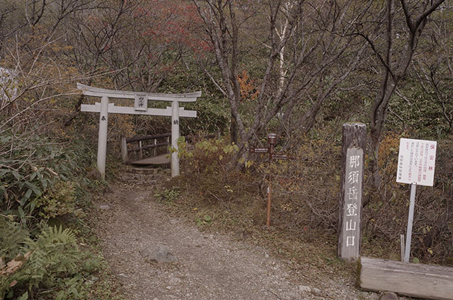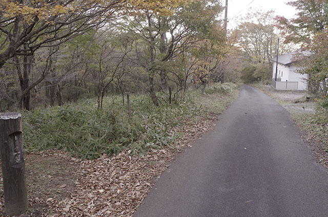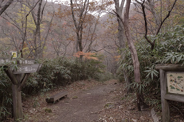 暇つぶしに三斗小屋温泉方面へ向かう樹林地帯のハイキングコースを周回してみることにした.残念ながら10月下旬では既に紅葉シーズンは終わってしまっていたようで、殺風景なコースだった.