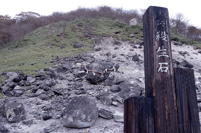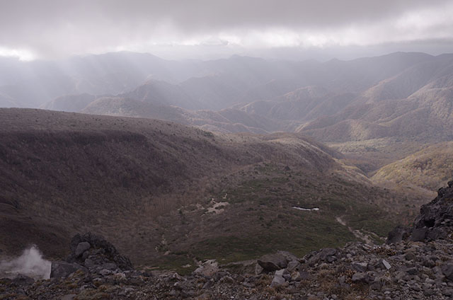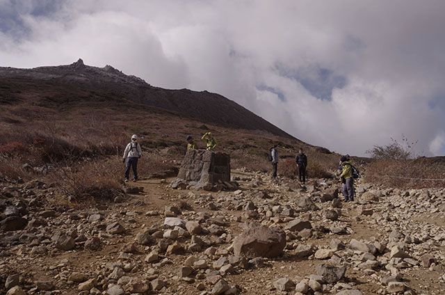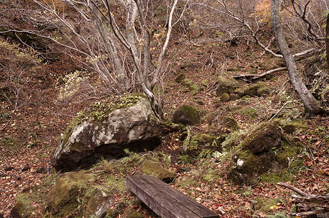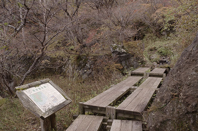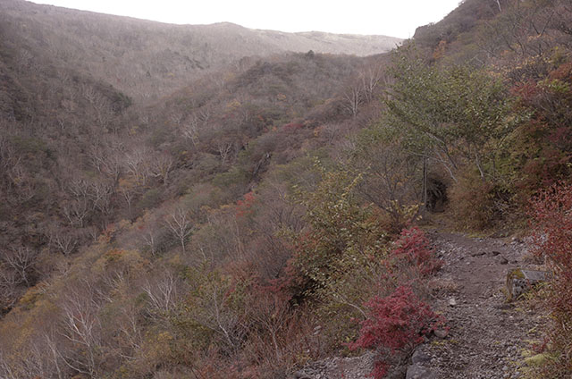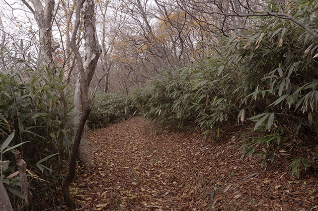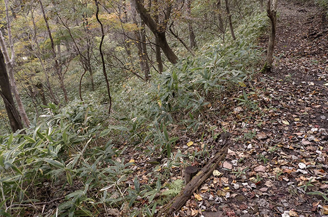 時間があれば沼原へ行ってみたかったが、行って戻ってくる時間は無さそうだったので今回は茶臼岳巡りをしてから、昔ながらの登山道である、高雄口コースで麓の湯本温泉へ下山することにした.降り積もった落ち葉の下に隠れている岩に難儀したが、茶臼岳方面へ向かうには一番風情のある良いコースだと思う.殺生石と浄水場の間の登山道が全く整備されておらず、笹藪の中を藪漕ぎしなければならなかったのがとても残念だった.