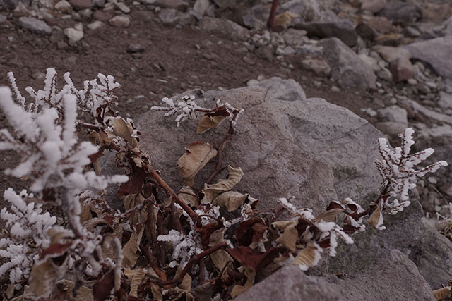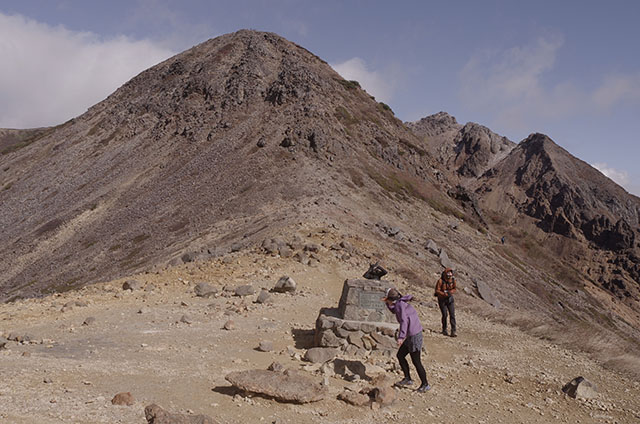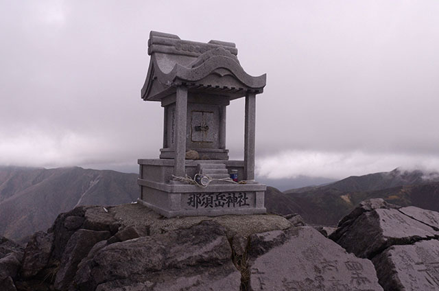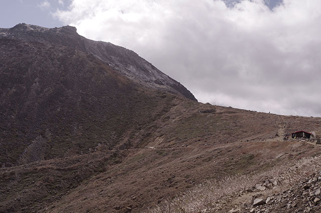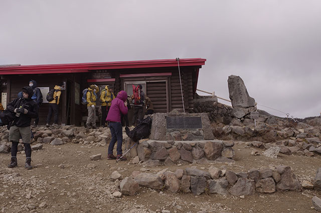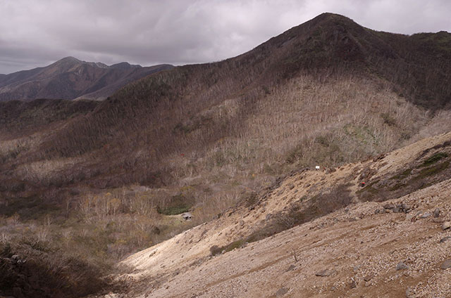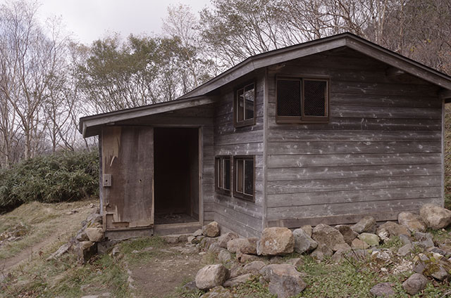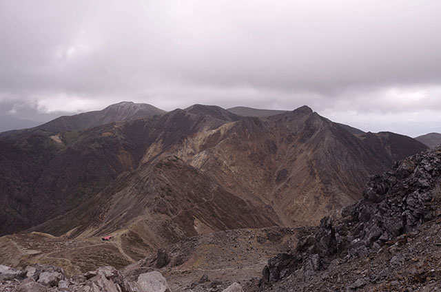 那須連山は風が強いことで知られているが、ここまで凄い風が吹き荒れるとは思いも寄らなかった.聞きしに勝る強風だ.峰の茶屋避難小屋でしばらく待避してから三本槍岳方面へ向かうが、風下の巻き道から稜線部分に出た途端立っていられない暴風で、地面に四つん這いになって風をしのぐが、とても歩けるような状況ではなく、三本槍岳方面は諦め峰の茶屋避難小屋へ引き返した.