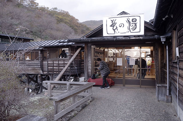 帰りに、湯本温泉名物の鹿の湯に立ち寄ったが、温度別の掛け流しの小さな浴槽が数個あるだけで、洗い場も何もなかった(石けんやシャンプーも禁止).公共交通機関で帰宅するのであれば、日帰り入浴を行っている旅館やホテルの方が良いだろう.