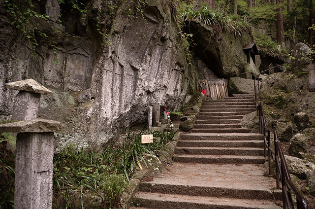 岩に巌を重ねて山とし、松柏年旧り、土石老いて苔滑らかに、岩上の院々扉を閉ぢて物の音聞こえず.岸を巡り、岩を這ひて、仏閣を拝し、佳景寂寞として心澄みゆくのみおぼゆ.