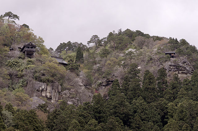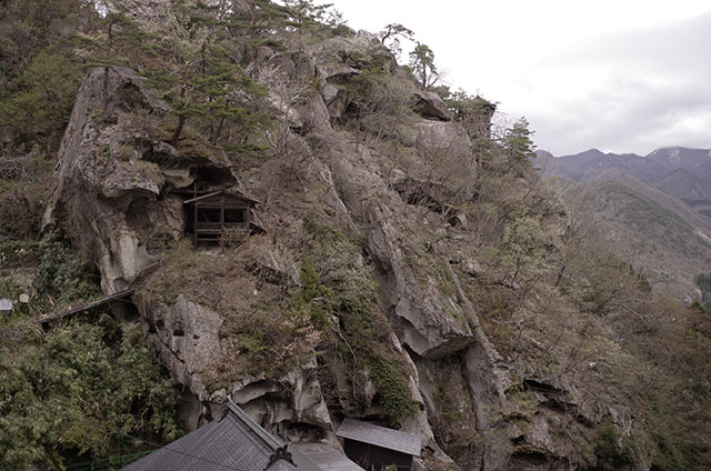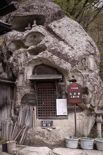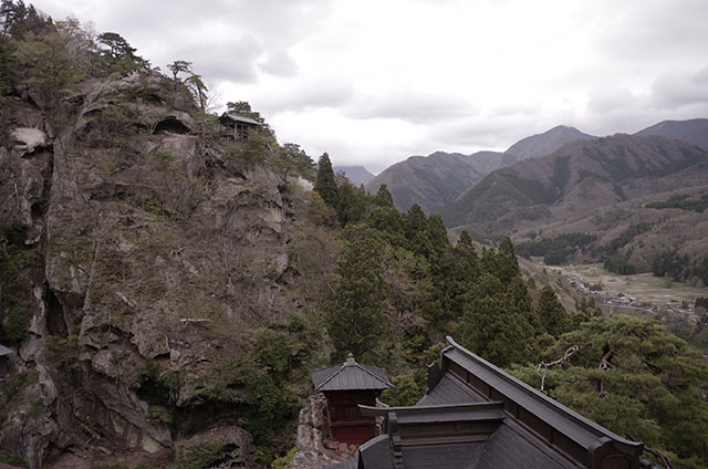 芭蕉が訪れた頃は、本格的な修行のためのお寺だったが、芭蕉の句によって一躍脚光を浴びる観光の寺と化してしまったのは何とも皮肉だ.お寺を取り巻く環境は大きく変化してしまったが、この断崖絶壁の修行の場の光景は芭蕉の頃とほとんど変わっていないだろう.芭蕉は奥の細道の本文でこの光景を見事に切り取っている.