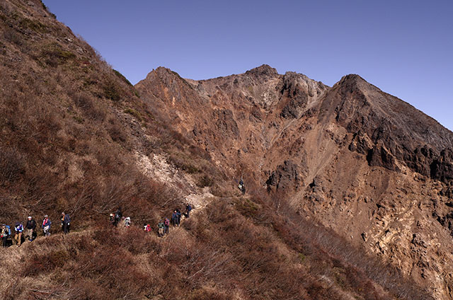前回、前々回と悪天候に阻まれて行くことの出来なかった那須連山の一角をなす三本槍岳であったが、今回絶好のコンディションに恵まれ、お散歩気分でのんびり歩くことができた.ロープウェイ口から登り、朝日岳を経て三本槍岳へ向かい、帰りは中の大倉尾根から北湯温泉に立ち寄ってから帰ることにした.