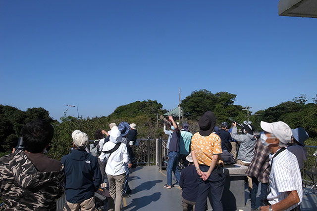 3階建ての展望台の最上段には、地元の横須賀の三浦半島渡り鳥連絡会のメンバーらしき人達が、渡り鳥たちの数を一生懸命数えていた.この日は午前10半時点で、サシバのカウント数は100を超えていた.