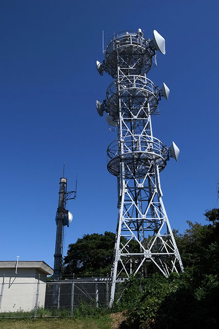 途中に1箇所だけ富士見百景の展望スポットが有るくらいで、コンクリートで舗装された車一台通れるくらいの細く単調な登りが続いた.武山の頂上には武山不動というお寺があるので、そのお寺へ車で向かうための舗装道のようだ.