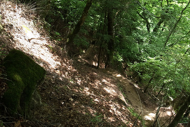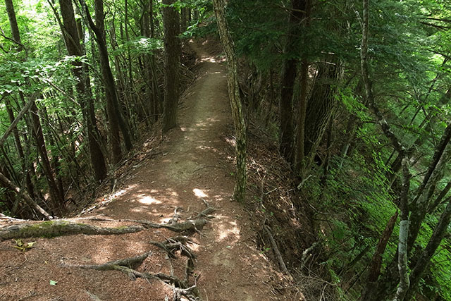 丸川峠から大菩薩峠登山口への登山道は想像以上に急な坂道で、歩き難い木の根道や切り立った痩せ尾根が続く結構難儀な道だった.どおりで行きのバスで大菩薩峠登山口で降りる人がほとんど居なかった訳だ.