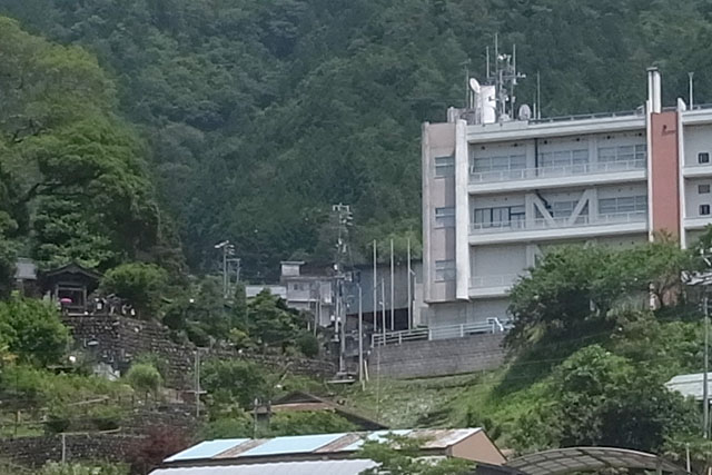 長野県の最南端に位置する天龍村は人口1,300人ほどの小さな村だが、ブッポウソウが毎年繁殖のために営巣することでバーダーさん達に知られており、村全体でブッポウソウの繁殖を見守っていると言う.村のCATVでは役場の屋上の巣箱の様子を生中継しており、今ではブッポウソウが村の観光の目玉になっているようだ.