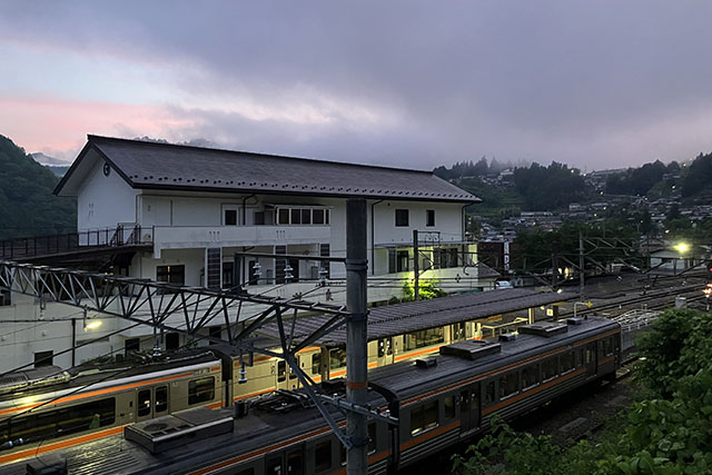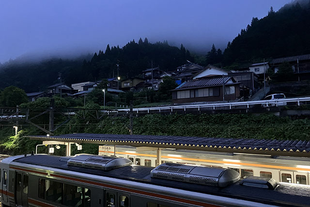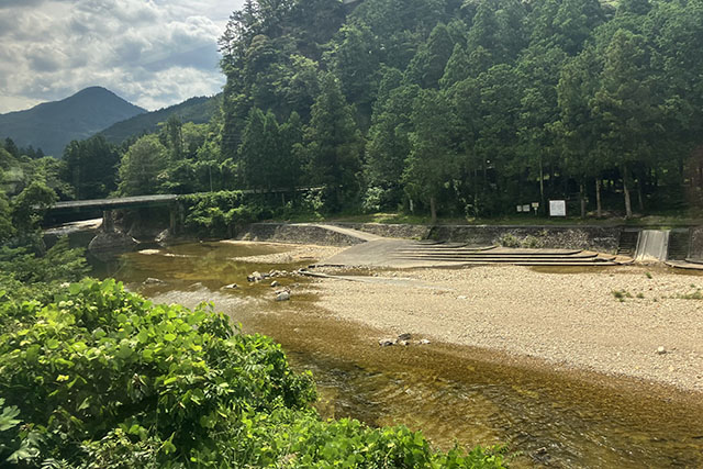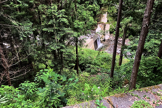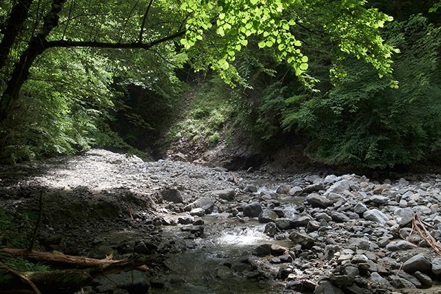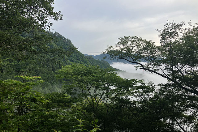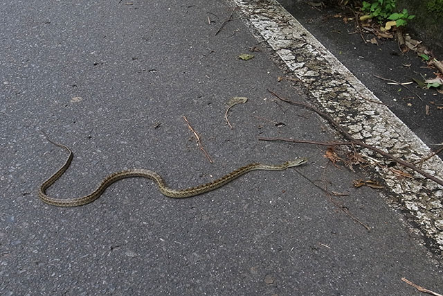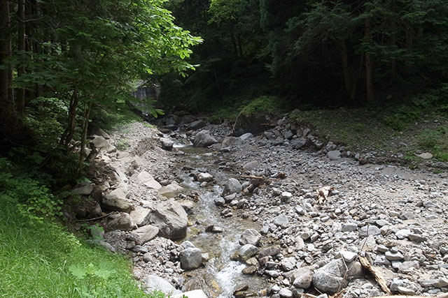 翌朝早朝、アカショウビンを探しに天竜川へ注いでいる所蛇川の沢沿いの林道を突き当たりまで行ってみたが、遠くの谷筋で鳴いているアカショウビンの声を確認することはできたが近くで確認することはできなかった.天龍村の周辺では周りの山々が急峻なため沢の流れが急すぎてアカショウビンの餌となる沢ガニやザリガニ、蛙などが少ないことと、山の斜面の大部分が杉や檜の人工植林地帯で生物相が貧困なことと、アカショウビンが営巣できそうな広葉樹林の森が見当たらないことからアカショウビンの観察には向かないようだ.