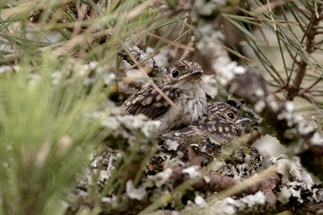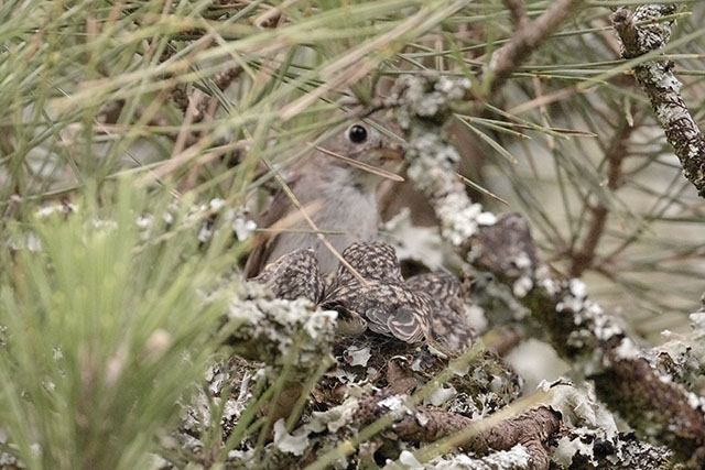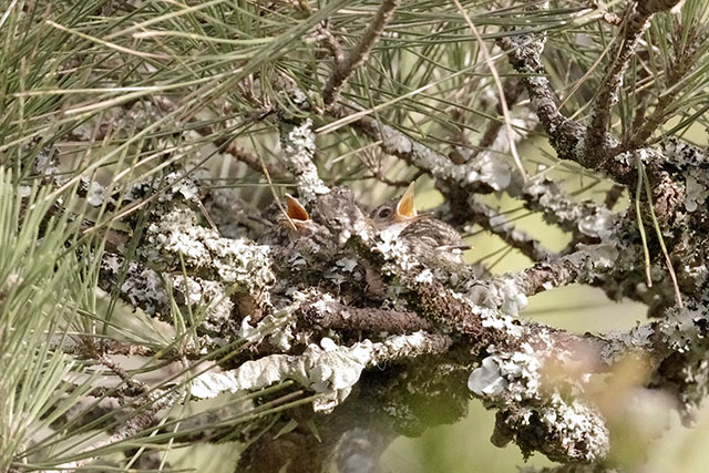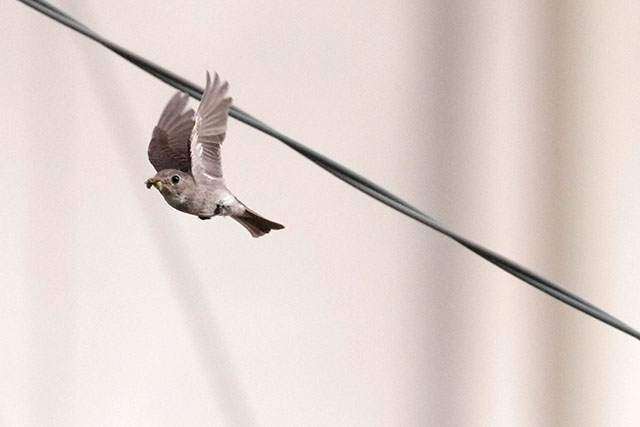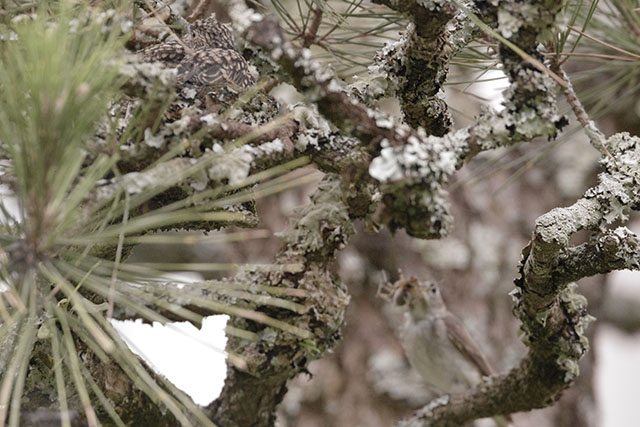 お寺の境内から役場の屋上の巣箱までは結構距離があるので、それなりの望遠レンズと立派な三脚を用いないとブッポウソウの撮影は難しいだろう.私はブッポウソウの撮影よりも、専らお寺の境内の松の木に営巣していたコサメビタキの雛たちの方を観察していた.