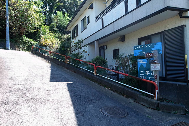 富士見百景 鷹見の見物のはずが... いつの間にか秋の空 衣笠仲通り商店街 二子山ハイキングコースへ ハイキングコースに入る 歩き易い緩やかな地道 迂回指示 スズメバチ出没の警告 道迷いの注意 ここから頂上までは砂利道が続く 二子山の東側の頂上 比較的新しい三角点 横浜や久里浜方面を望む 堆肥の無料配布 二子山を望む 葉山ステーション 地元の名産品