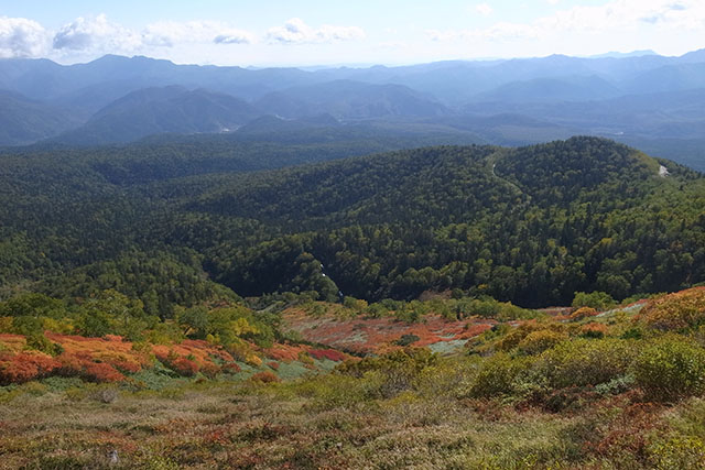 9月下旬になっても関東地方から西では異常な高温が続いているが、今年の北海道はまだましだったようで、例年よりも秋の到来が遅れているとはいえ、このところの朝晩の冷え込みで大雪山系の山々では紅葉が順調に進んでいるようだ.