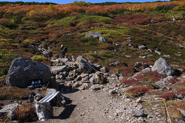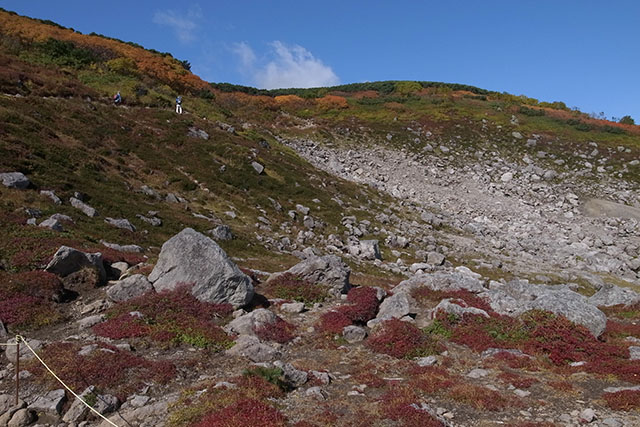 平日の早朝と言うこともあり、銀泉台へ向かう朝7時30分のシャトルバスの乗客は5〜6人程度だった.前回渋滞していた登山道も空いていて、のんびり自分のペースで紅葉を楽しむことができてとても良かった.風が強いことを除けば、真っ青な青空が広がり、気温も高めで紅葉見物には絶好の天気だった.